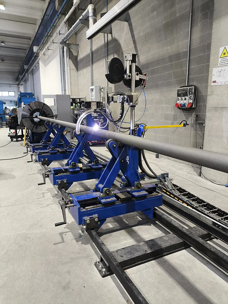 Il reparto fusioni centrifugate è equipaggiato con forni elettrici ad induzione e centrifughe orizzontali di ultima generazione, che permettono la produzione di tubi con caratteristiche metallurgiche ottimali per applicazioni meccaniche e a pressione. L’impianto di saldatura ad alta precisione consente la realizzazione di tubi con lunghezze fino a 16 metri, garantendo continuità strutturale e uniformità del materiale.